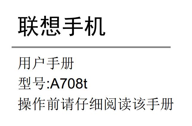 联想Lenovo a708t手机配有5.5英寸的显示屏,分辨率为960x540像素,采用双摄像头前置200万像素+后置500万像素的摄像头。下面给大家带来的是联想a708t手机使用说明书(Lenovo a708t),有需要的朋友可以下载联想a708t说明书查看详细内容。