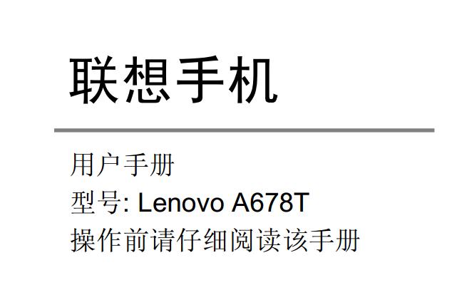 联想Lenovo a678T是采用5英寸的触摸屏,屏幕分辨率为854x480像素,后置500万像素的单摄像头。下面小编给大家带来的是联想a678T手机使用说明书,有需要的朋友可以下载联想a678T说明书查看详细内容。