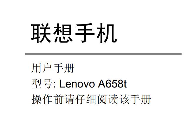 联想Lenovo a658t采用5英寸的触摸屏,屏幕分辨率为854x480像素,512MB的RAM内存+4GB的ROM内存,500万后摄像头。下面小编给大家带来的是联想a658t手机使用说明书(Lenovo a658t使用手册),有需要的朋友可以下载联想a658t说明书查看详细内容。