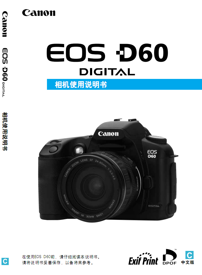 本节内容小编要和大家分享的是Canon佳能EOS D60用户指南(pdf格式高清版手册),有需要的朋友可以进行下载查阅哦!