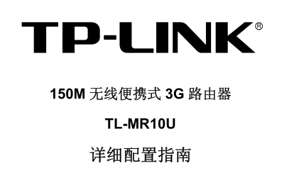 TL-MR10U外型小巧精致,尺寸仅9.1cm*4.3cm,以纯净白色为主色调,支持3G接入,支持中国电信(CDMA2000)、中国联通(WCDMA)、中国移动(TD-SCDMA)三种制式,兼容市面上各式主流的3G上网卡。以下文档是TL-MR10U详细配置指南,有需要的朋友可立即下载此文档。