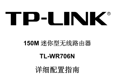 TL-WR706N是一款150M迷你型无线路由器,即插即用、无需配置,支持AP、Client、Repeater、Bridge、Router五种工作模式。以下文档是TL-WR706N详细配置指南,有需要的朋友可立即下载此文档。