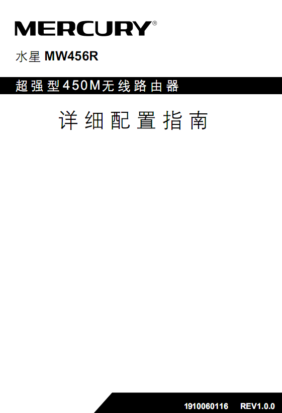 本节内容小编要和大家分享的是水星MW456R无线路由器说明书(详细配置指南),pdf格式,有需要的朋友可以进行下载查阅哦!