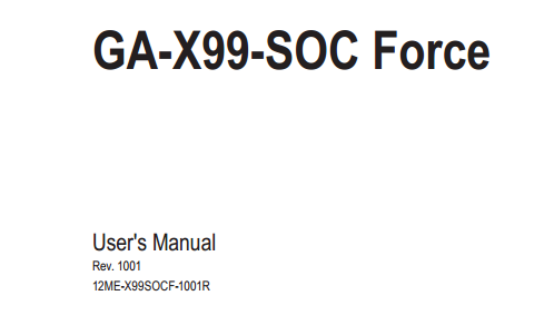 技嘉GA-X99-SOC Force支持新一代Intel® Core™ i7 极致版处理器,支持8插槽4 信道 DDR4内存架构,支持Thunderbolt高速传输接口。以下文档是技嘉GA-X99-SOC Force使用手册,为英文版本,有需要的朋友可立即下载此文档。