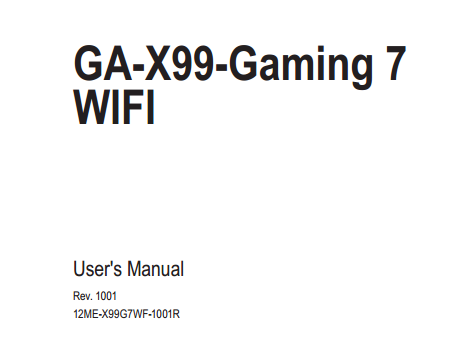 技嘉GA-X99-Gaming 7 wifi支持新一代Intel® Core™ i7 极致版处理器,使用业界领先的IR电源供应模块控制器搭配PowIRstage™ 芯片。以下文档是技嘉GA-X99-Gaming 7 WIFI使用手册,为英文版本,有需要的朋友可立即下载此文档。