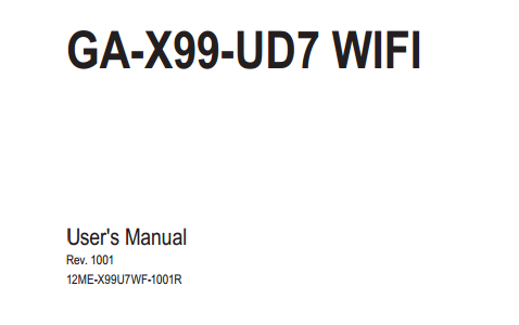 技嘉GA-X99-UD7 wifi支持新一代Intel® Core™ i7 极致版处理器,使用业界领先的IR电源供应模块控制器搭配PowIRstage™ 芯片,双M.2接口支持固态硬盘与内建WIFI无线网卡。以下文档是技嘉GA-X99-UD7 WIFI用户手册,为英文版本,有需要的朋友可立即下载此文档。