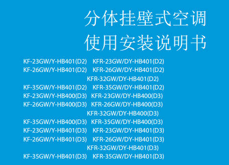 美的悦典系列拥有强劲制冷热,室内机热干燥清洁功能,隐藏式显示屏,简约时尚。以下文档是美的悦典KF-23GW/Y-HB401(D2) KFR-23GW/DY-HB401(D2),KF-26GW/Y-HB401(D2) KFR-26GW/DY-HB401(D2),KFR-32GW/DY-HB401(D2),KF-35GW/Y-HB401(D2) KFR-35GW/DY-HB401(D2),KF-23GW/Y-HB400(D3) KFR-23GW/DY-HB400(D3),KF-26GW/Y-HB400(D3) KFR-26GW/DY-HB400(D3),KFR-32GW/DY-HB400(D3),KF-35GW/Y-HB400(D3) KFR-35GW/DY-HB400(D3),KF-23GW/Y-HB401(D3) KFR-23GW/DY-HB401(D3),KF-26GW/Y-HB401(D3) KFR-26GW/DY-HB401(D3),KFR-32GW/DY-HB401(D3),KF-35GW/Y-HB401(D3) KFR-35GW/DY-HB401(D3)使用安装说明书,有需要的朋友可立即下载此文档。