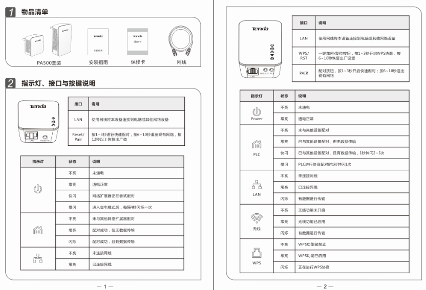 "1*PA500 300Mbps无线扩展器 1*P500 " 1*1m网线 快速安装指南 保修卡 包装配件