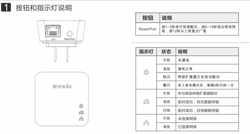 腾达p500x2按钮和指示灯说明