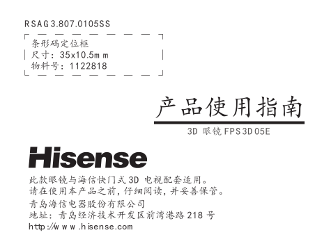 海信FPS3D05E是一款充电式射频快门3D眼镜,适用于海信LED42EC600D、 LED32EC600D、LED39EC600D、 等XT880 XT780 k610EC600D系列。以下文档是海信3D眼镜FPS3D05E使用指南,有需要的朋友可立即下载此文档。