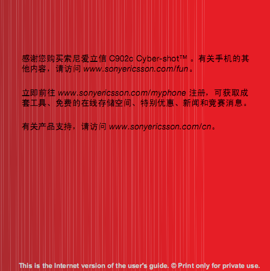 本节内容小编要和大家分享的是Sony Ericsson索尼爱立信C902c中文指南(pdf格式说明书),如果你想对索爱c902c这款手机有进一步的了解或是正在寻求索爱c902cpdf格式说明书,那么小编建议你可以进行下载查阅!