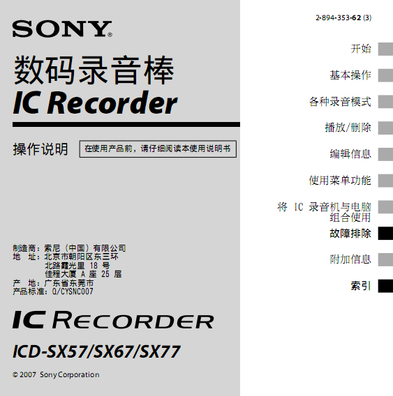 索尼ICD-SX77是一款具有宽大LCD背光显示屏,全面支持MP3音乐格式、录音时间最长可达374小时5分的录音笔,本节内容小编就为大家带来这款录音笔的使用说明书,建议有需要的小伙伴进行下载查阅!