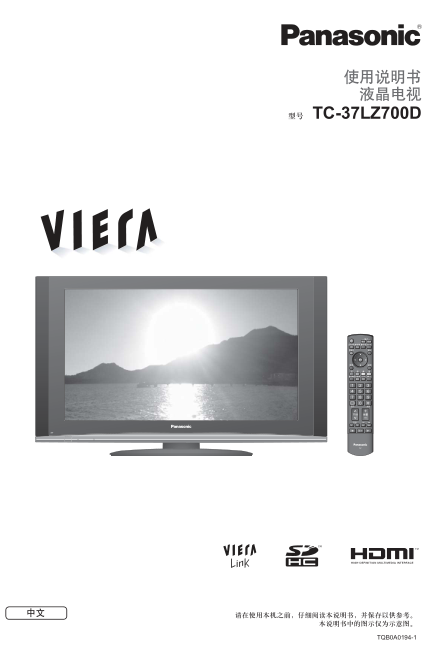 松下TC-37LZ700D是一款37英寸高清LCD液晶电视,屏幕分辨率为1920×1080,观看距离为2.5米,拥有HDMI接口,S端子,AV接口,VGA接口,分量视频接口。以下文档是松下TC-37LZ700D液晶电视使用指南(用户说明书),有需要的朋友可立即下载此文档。