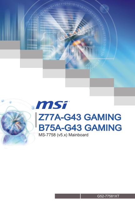微星Z77A-G43 GAMING主板支持LGA 1155第三代Intel®的酷睿™i7/酷睿™i5/酷睿™i3/奔腾®/赛扬®处理器,支持AMD CrossFire显卡。以下文档是微星Z77A-G43 GAMING和B75A-G43 GAMING用户手册,为英文版,有需要的朋友可立即下载此文档。
