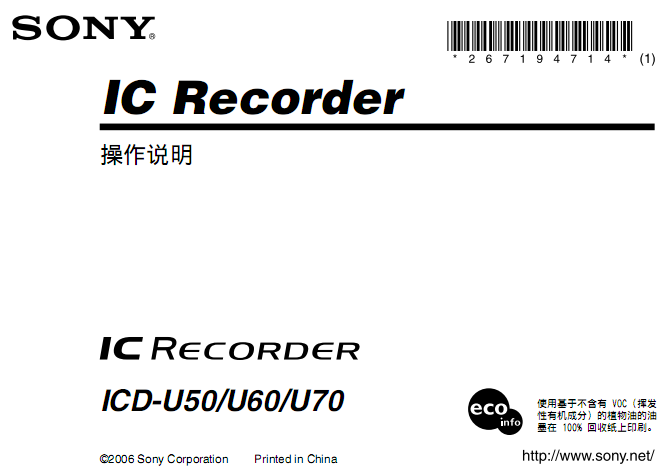 索尼ICD-U60是一款存储容量为512MB,录音时间可长达125小时15分钟的录音笔,本节内容中小编就为大家带来关于这款索尼ICD-U60录音笔的说明书,有需要的朋友可以下载查阅哦!