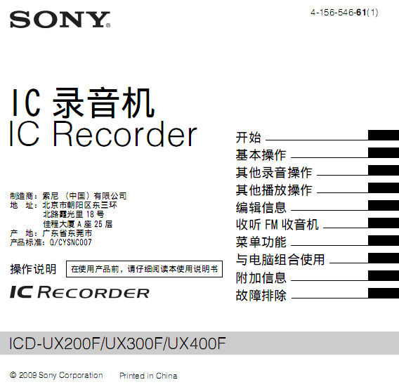 索尼ICD-UX300F是一款存储容量为4GB,具有MP3音乐播放、数码播放速度操控播放性能的录音笔,本节内容中小编就为大家带来关于这款索尼ICD-UX300F录音笔的说明书,有需要的朋友可以下载查阅哦!