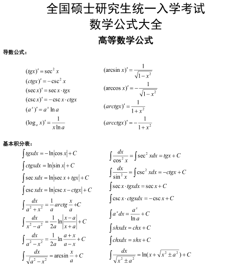 对于2015考研数学,大家对公式是不是倒背如流呢?今天小编就和大家分享一下2015考研数学常用公式汇总,包含高数,线代,概率,大家可以免费下载打印,有需要的朋友可立即下载此文档。