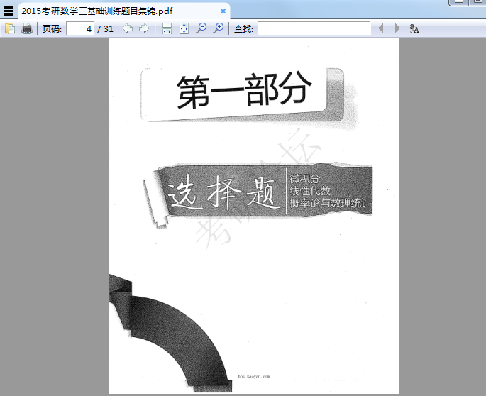 想要在2015考研数学中,取得更好的成绩,基础是必须打好的。今天小编就和打击分享一下2015考研数学三基础训练题目集锦,有需要的朋友可立即下载此文档。