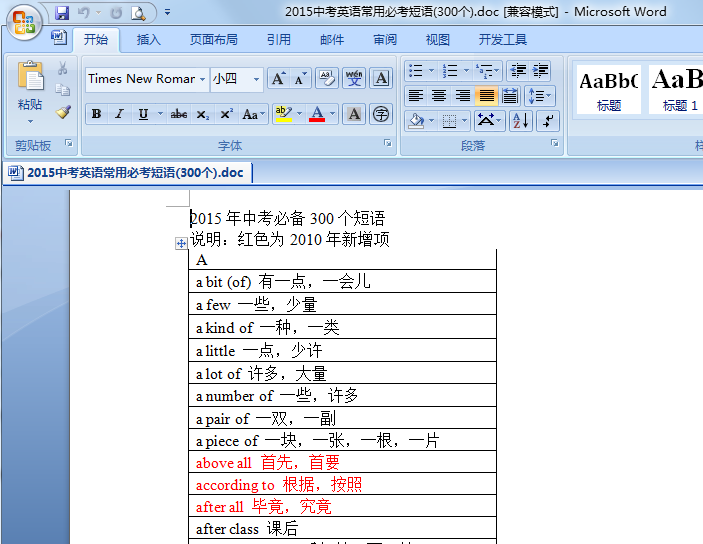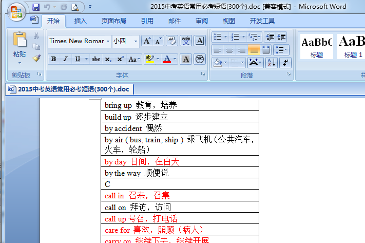 参加2015中考的各位考生,估计都是反复做各地历年真题,模拟题,目的就是强化英语各方面的能力。作为历年中考英语考点,除了单词,还有一些常用的中考英语短语,也是命题人喜欢考的。今天小编和大家分享的就是2015中考英语词汇,详细介绍了300个常用的中考英语短语,为doc格式,有需要的朋友可立即下载此文档。