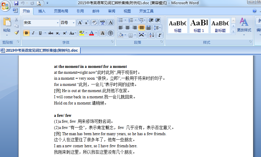 2015中考英语常见词汇辨析集锦(附例句)介绍