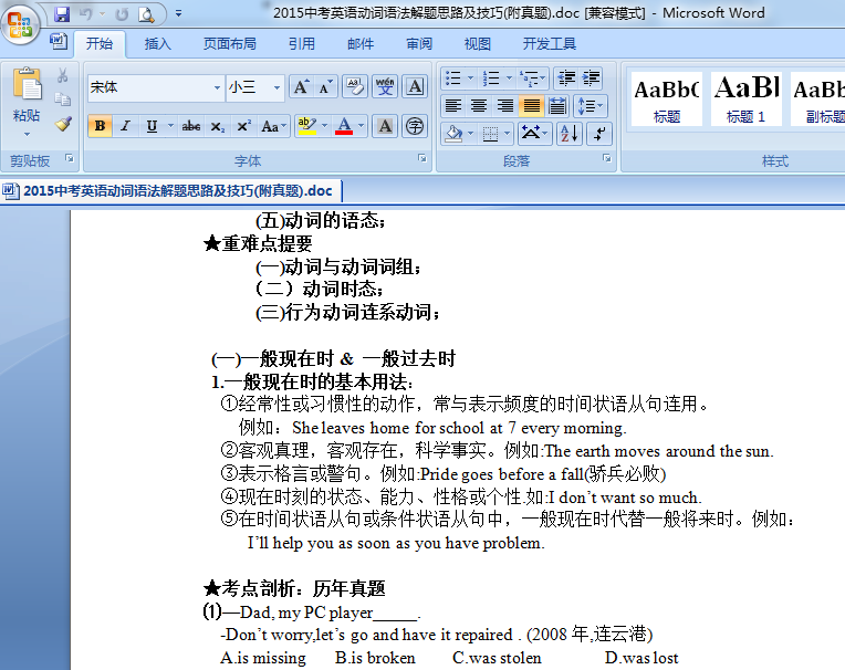 2015中考英语动词语法解题思路及技巧(附真题)介绍