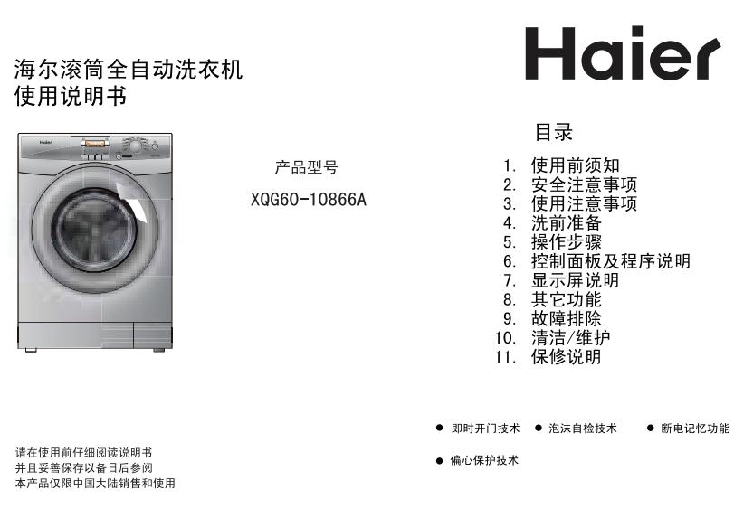 海尔洗衣机XQG60-10866A 家家爱怎么使用呢?下面给大家带来的是海尔洗衣机xqg60 10866a使用说明书,大家可以下载海尔xqg6010866a说明书查看详细内容。