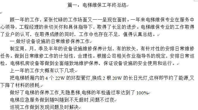电梯维保个人工作总结节选