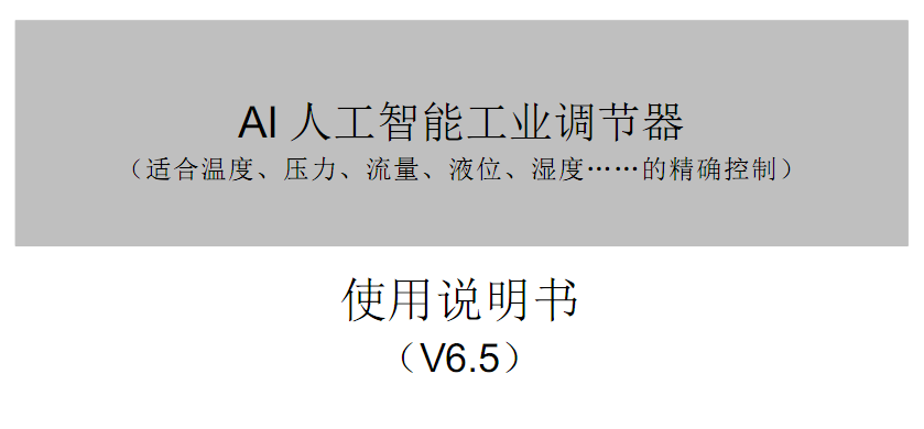 本说明书介绍的是V6.5的AI系列人工智能工业调节器/温度控制器,本说明书介绍的功能有部分可能不适合其他版
