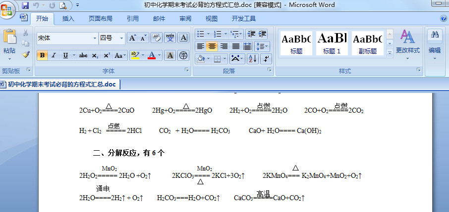 在初中化学的学习中,不仅仅要背下元素周期表,还要背一些常用的化学方程式,不过都有哪些呢?今天小编和大家分享的是初中化学期末考试必背的方程式汇总,为doc格式,希望这些初中化学方程式对大家的考试有所帮助,有需要的朋友可立即下载此文档。