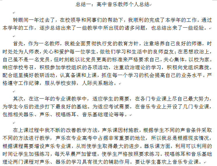 高中音乐教师个人总结节选
