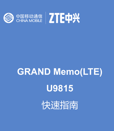 中兴ZTE Grand Memo(U9815)是一款5.7英寸3G智能手机,Android OS 4.1操作系统,四核处理器,支持GPS导航,电子罗盘。以下文档是中兴ZTE U9815使用说明书,有需要的朋友可立即下载此文档。