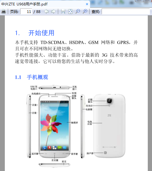 中兴ZTE U968使用说明书目录预览
