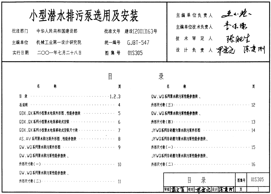 01S305小型潜水排污泵选用及安装图集内容截图