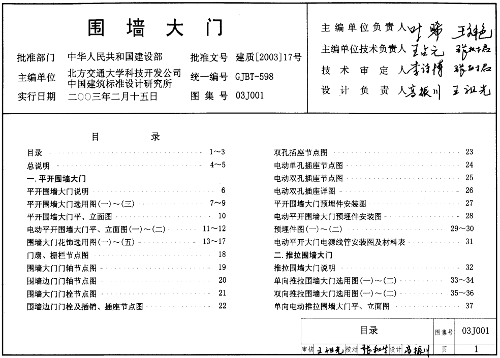 本节内容小编为大家精选带来的是pdf格式免费高清版03J001围墙大门图集(简称03j001图集),如果你正好需要一份这样的“03j001图集免费下载”资料,那就赶紧点击本文下方的下载地址进行查阅吧!