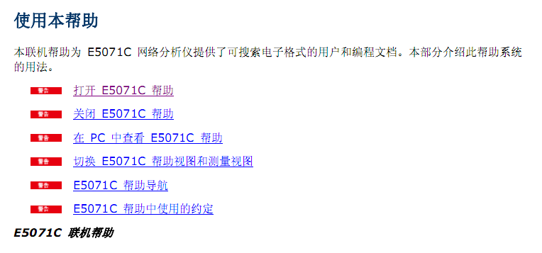 快速访问位于 E5071C 联机帮助的主页上,是访问 E5071C 联机帮助内容的一种便捷方法。