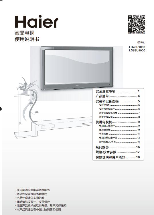 海尔ld55u9000说明书目录