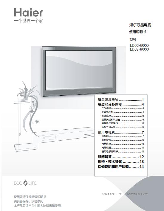 海尔ld58h9000电视怎么安装连接?海尔ld58h9000电视怎么设置?这里给大家带来的是海尔ld58h9000液晶电视使用说明书,需要的朋友可以免费下载海尔LD58H9000说明书查看详细内容。