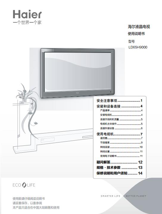 海尔ld65h9000电视怎么安装?海尔ld65h9000怎么设置?这里给大家带来的是海尔ld65h9000液晶电视使用说明书,需要的朋友可以进行免费的下载。
