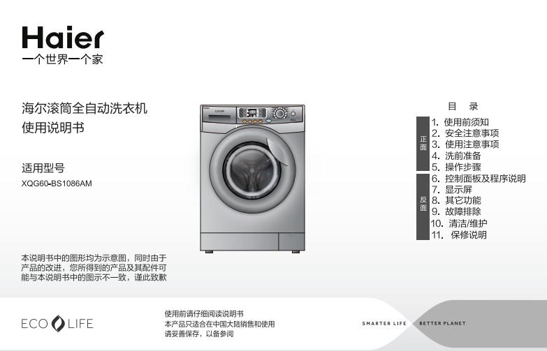 海尔洗衣机xqg60bs1086am怎么使用呢?这里给大家带来的是海尔洗衣机xqg60 bs1086 am使用说明书,大家可以免费下载海尔XQG60-BS1086 AM说明书。