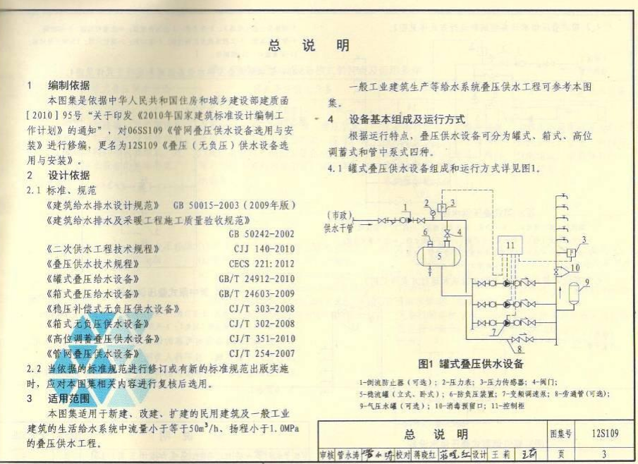 12S109叠压(无负压)供水设备选用与安装图集内容截图