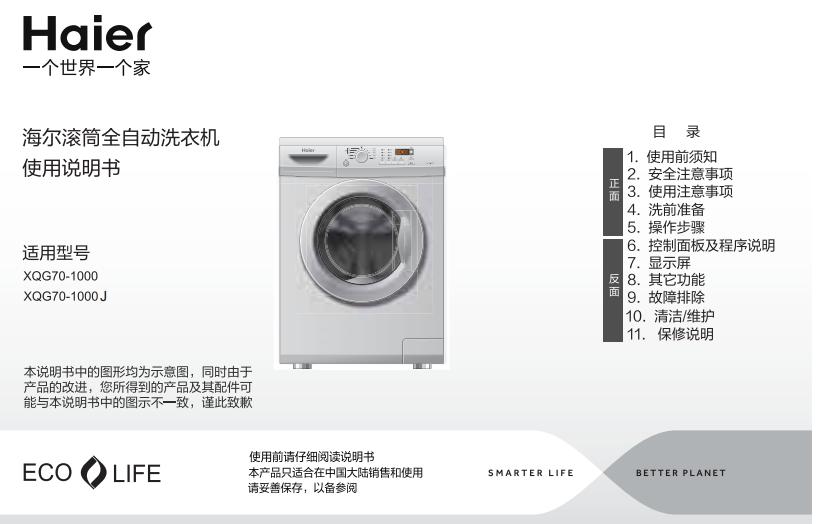海尔xqg701000j洗衣机怎么操作呢?这里给大家带来的是海尔海尔xqg70 1000j洗衣机使用说明书,需要的朋友可以免费下载海尔XQG70-1000J说明书。