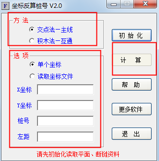 选项二:点击计算按钮,读取坐标文件,选择保存的桩号文件。