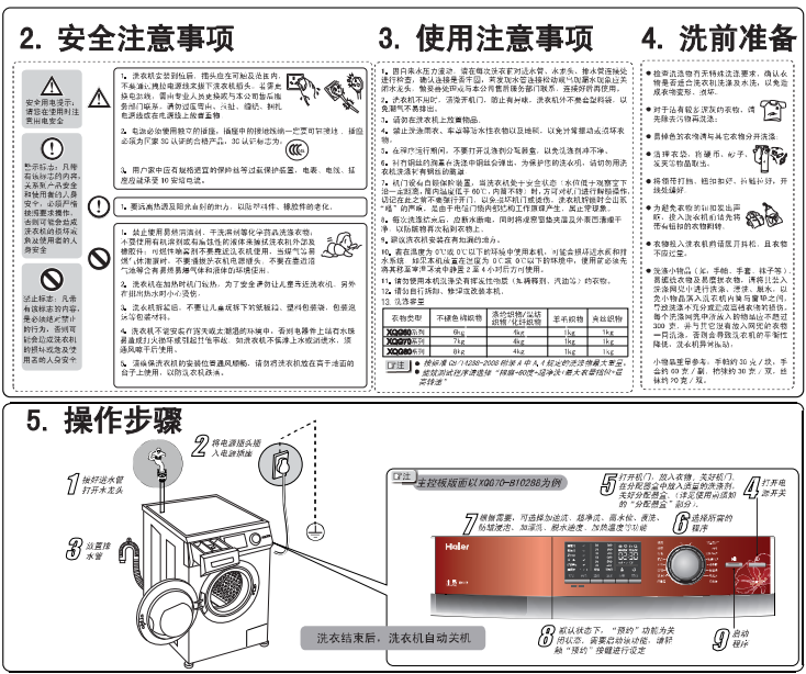 海尔xqg70 bx12288z洗衣机使用说明书pdf电子