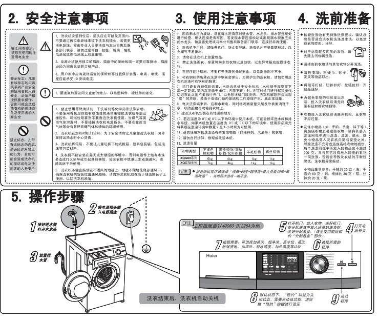 海尔xqg70 bx12288z洗衣机使用说明书pdf电子