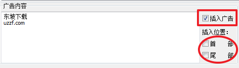 3、如需植入广告则勾选“插入广告”,设置广告内容,选择广告插入位置即可