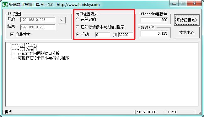 极速端口扫描工具是一款绿色稳定、速度超快的端口扫描器。该扫描器可扫描木马端口,并对相关端口进行分析,同时支持端口自我扫描功能。欢迎下载使用!
