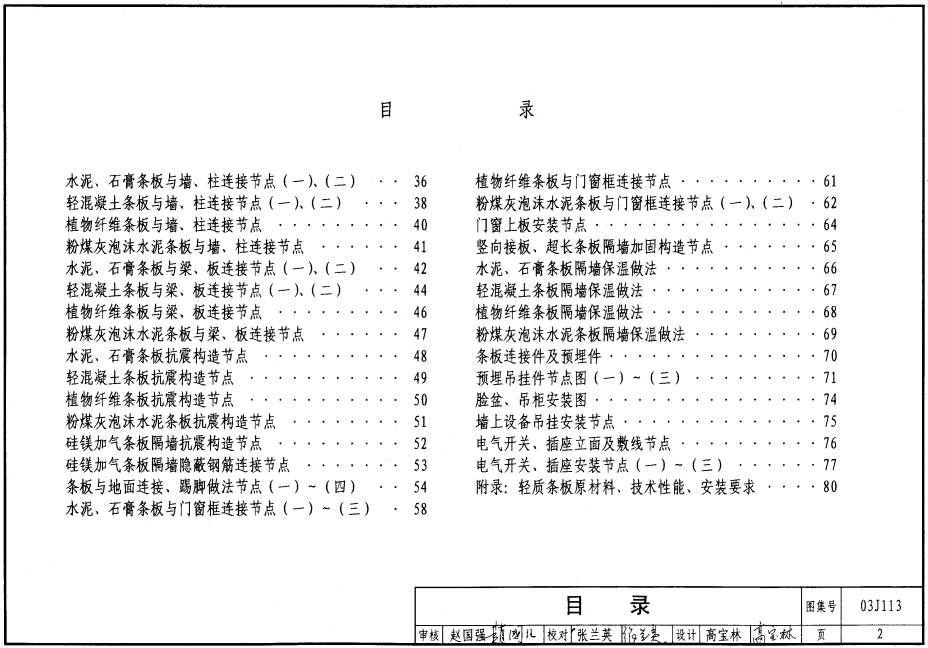 本节内容小编为大家精选带来的是pdf格式高清无水印免费版03J113轻质条板内隔墙图集(简称03j113图集),本图集共有90页,图集内容详细,字迹清晰,有需要的朋友点击本文下方的下载地址即可进行下载查阅。