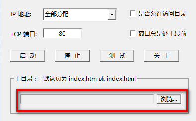 三. 设置WEB服务器端口,默认为 80,设置完后点击 启动按钮 即可,然后你可以点 测试 按钮,查看下运行状态!