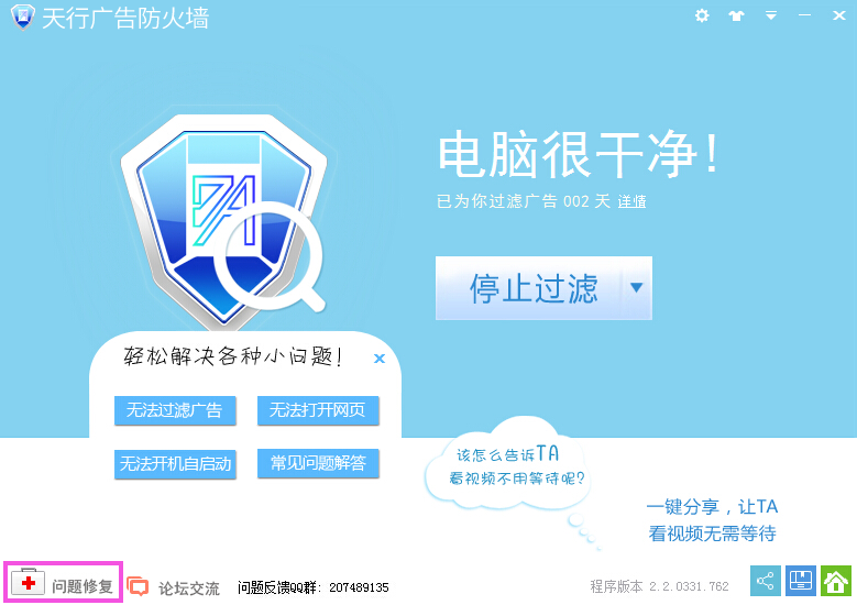 用户在使用天行广告防火墙难免会因为各种环境造成各种各样的问题,如;1、无法打开网页