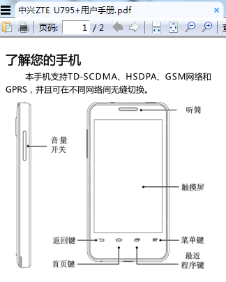 中兴ZTE U795+是一款4英寸3G智能手机,Android OS 4.0操作系统,双核处理器,后置300万像素摄像头,机身颜色为黑色。以下文档是中兴ZTE U795+使用说明书,有需要的朋友可立即下载此文档。